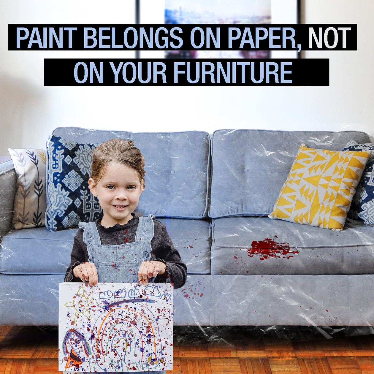 Our heavy-duty, clear vinyl furniture covers last while keeping your furniture from damaging stains or messes. Protects your Sofa from Dust, Pet Hair, or Spills. Great for Pet Owners. Wipe clean with damp cloth. Unfold and simply fit over your furniture, wipe clean with a damp cloth. Great for guests who may make a mess! *** NEVER MACHINE WASH ***